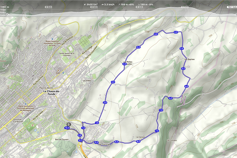Le parcours autour du Mont Cornu : 10, 1 km.